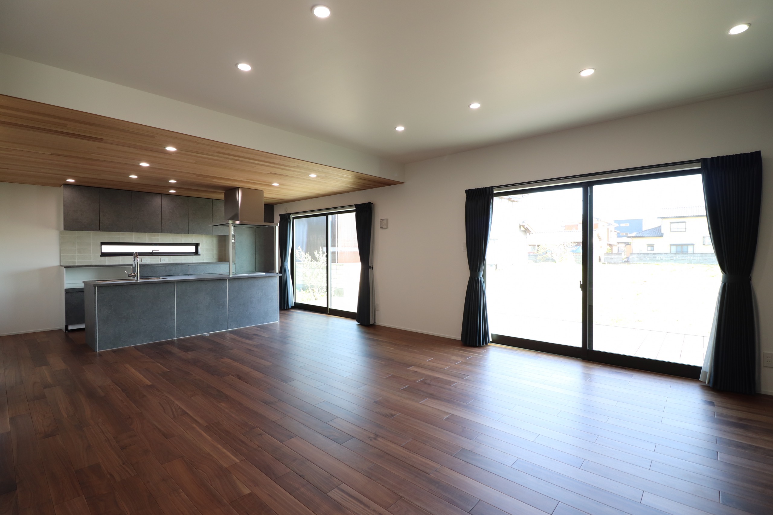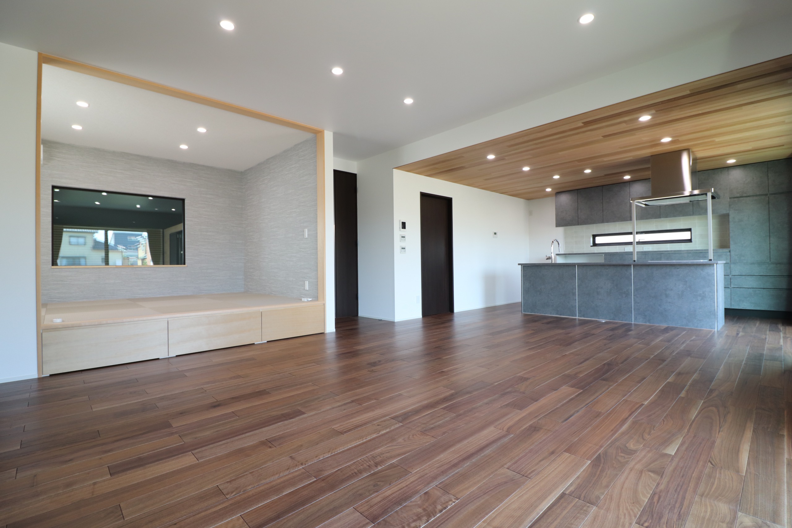 内装はダーク色でまとめられているため、自然素材の良さがきわ立っています。
