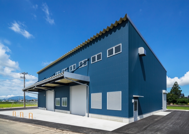 重量鉄骨造により、広い作業空間と高い強度を確保し、長く安心して利用いただける施設に仕上がりました。