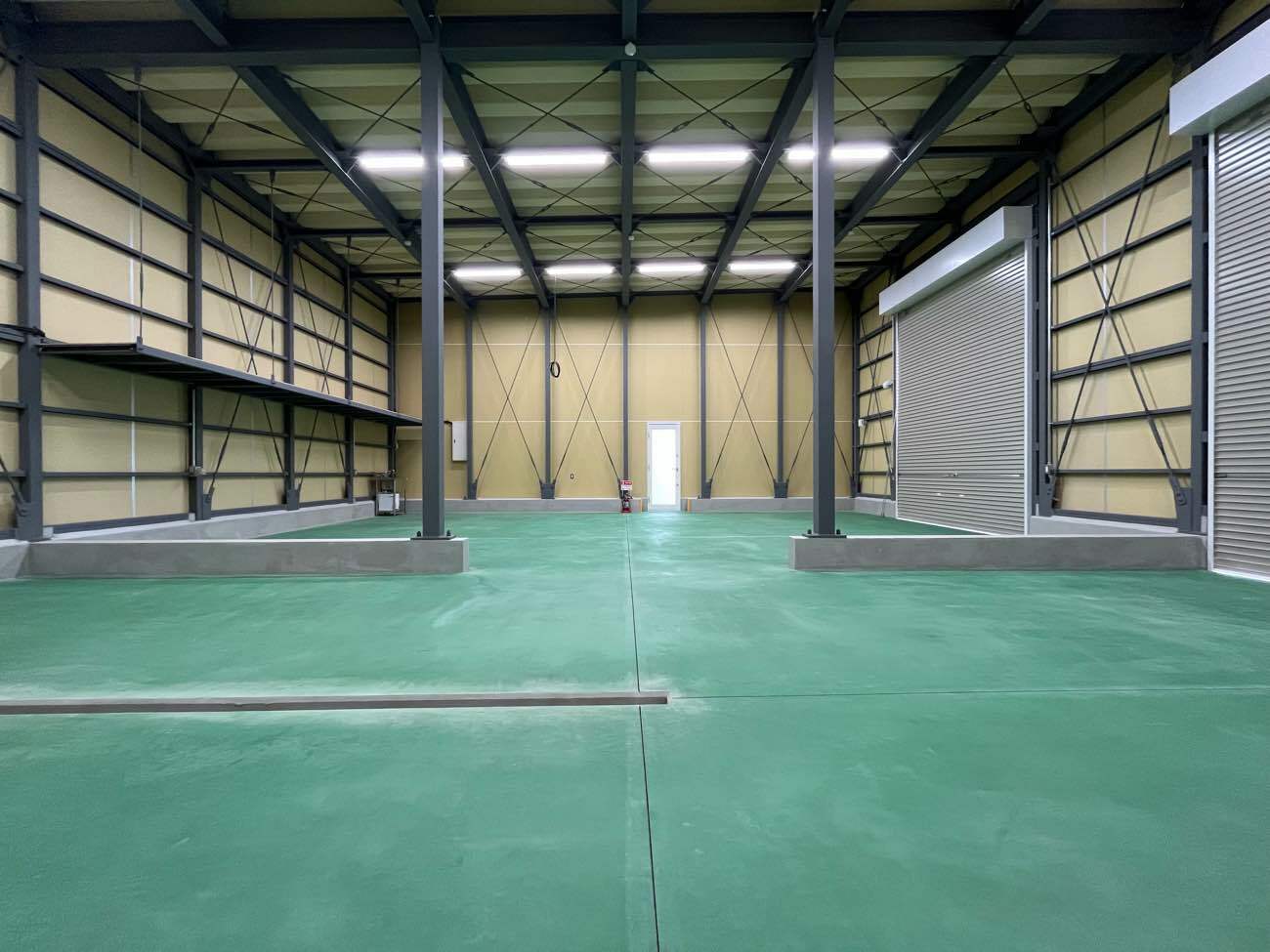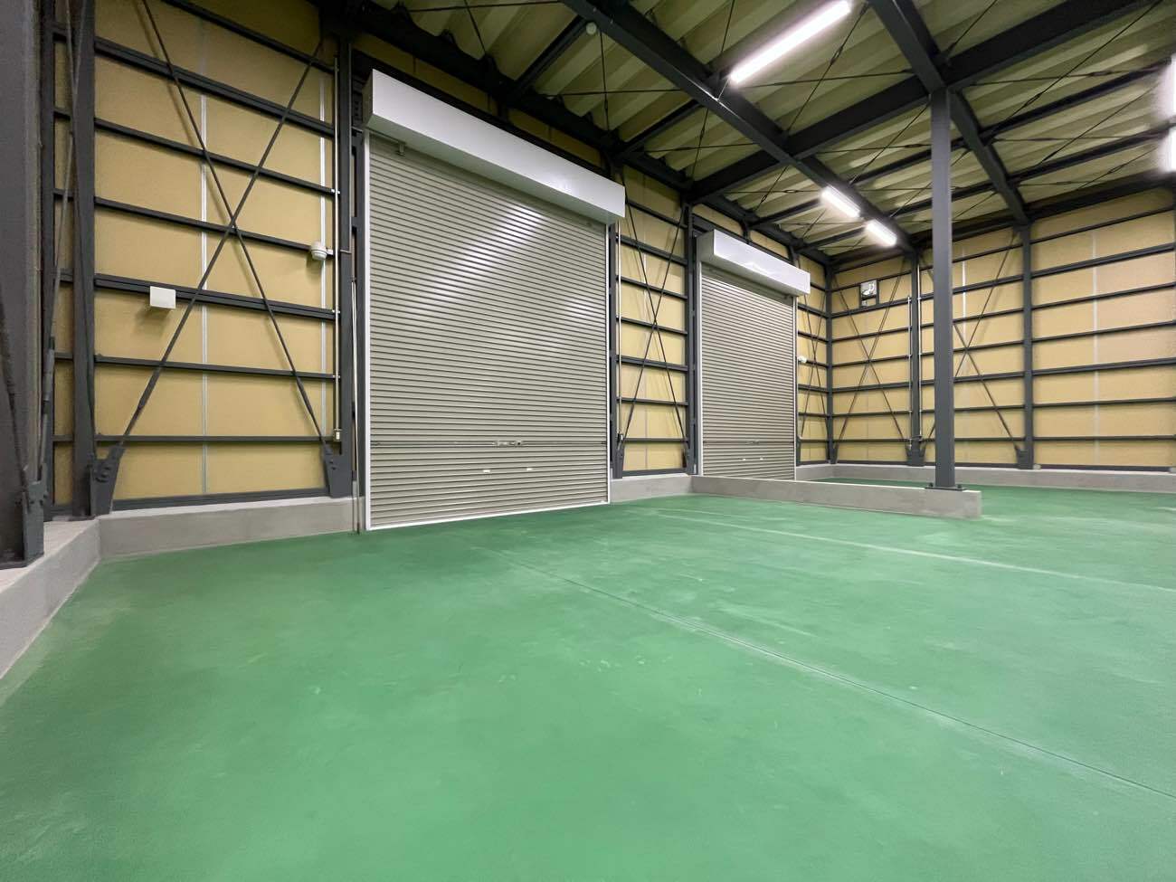 建物全体はコストパフォーマンスに優れた軽量鉄骨造を採用しつつ、大型シャッターを設置する開口部は、強度と耐久性を重視して重量鉄骨を使用。